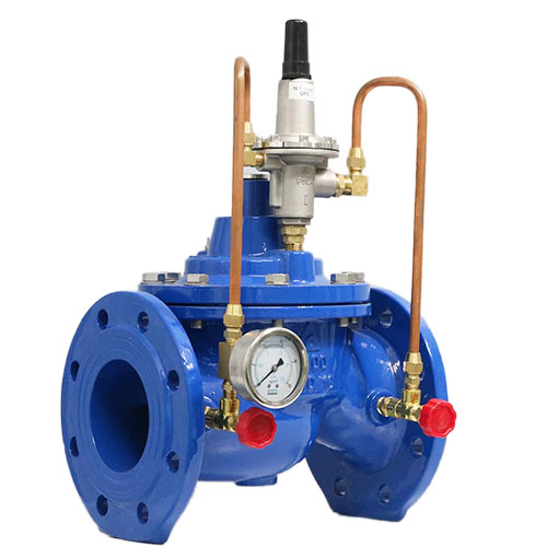 - Sau khi tiến hành lắp đặt van trên hệ thống chúng ta mở van chặn lắp đặt đường trước van an toàn để cho nước qua van. Khi đồng hồ đo áp xác định được áp lực qua van là bao nhiêu ta tiến hành bắt đầu điều chỉnh như sau: Chúng ta vặn bulong trên nắp của pilot theo chiều kim đồng hồ thì lò xo trong pilot sẽ ở trạng thái nén chặt lại hơn, Piston sẽ khó bị đẩy lên đồng nghĩa với việc tăng áp lực xả và ngược lại.